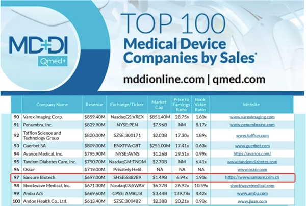 近日,医疗器械行业权威网站Medical Device+Diagnostic Industry(MD+DI)发布了2023年全球医疗器械企业TOP100榜单。今年会jinnianhui生物连续两年上榜全球百强,也是此次榜单唯二主营业务是体外诊断的中国企业。